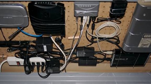 Is the area behind your desk an enormous mess of cables, power supplies, external drives, routers, etc? Here's a clever solution.